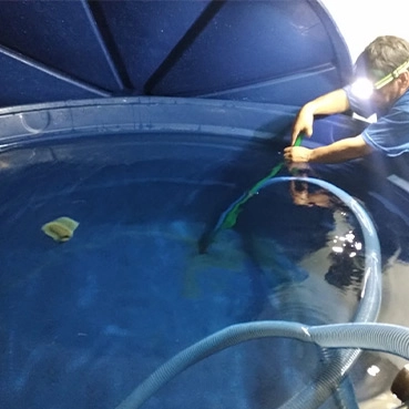 Limpeza das paredes, tetos e pisos para retirada do lodo, limo e detritos que se acumulam;